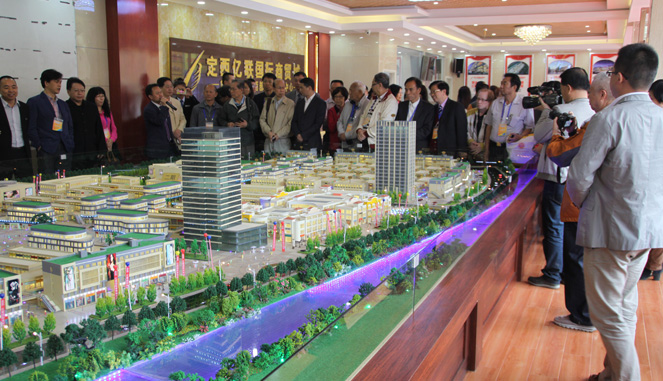在位于市区的销售展示中心,企业家们一见项目的沙盘模型,再一次被亿联商贸城巨大的规模、先进的设计、超前的理念所震撼,赞声不绝。亿联商贸城总经理陈加海介绍了项目情况,定西市政府副市长苗树群向企业家介绍了定西经济社会发展情况和招商引资工作以及市委市政府对定西亿联国际商贸城建设的定位、期望和支持措施。苗树群指出,定西亿联国际商贸城是市委市政府招商引资的重点项目,该项目的建成,对定西商业模式的改变和商业经济的发展,促进城乡居民就业和定西经济发展,都具有重大意义。希望企业家们与定西市政府和亿联集团合作,来定西投资兴业。