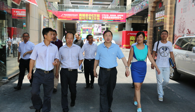 杨冬生厅长一行听取了潘碧华关于项目工程建设、销售、招商、运营等情况的汇报,并深入市场,走访商户仔细了解了入驻时间、租金价格、产品品牌、经营情况等。杨冬生厅长对亿联“统一规划、统一招商、统一经营、统一管理、统一推广” 市场运营管理模式表示肯定,赞同亿联积极突破传统经营模式,推行实体店电子商务经营模式,线上线下互动的经营理念,祝福亿联市场越做越好。