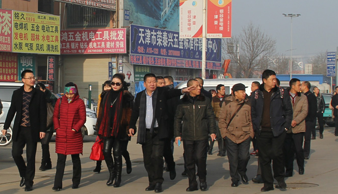 当天上午,考察团一行实地走访了中国北方五金城的市场经营现场,车水马龙的繁忙景象让考察人员感受到震憾,大伙纷纷说,“亿联建市、旺市,看来不是神话”。随后,考察人员在中国北方五金城会议室参加了座谈。