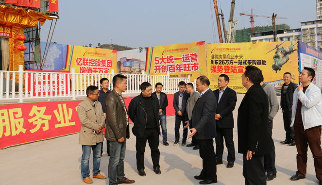 3月3日下午,四川省商务厅副厅长杨春轩等一行在达州市政府副秘书长李龙、市商务局副局长曹益、市商务局行业工会主席金劲的陪同下,到宣汉亿联建材家居五金城考察。宣汉县人大副主任周相生、副县长吴梅、宣汉亿联建材家居五金城总经理毛显淼等陪同。