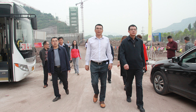 4月14日,云阳县委副书记、县长覃昌德,县委常委、常务副县长刘晓云,县人大副主任肖万福等领导莅临云阳亿联建材家居汽车城现场办公,冒雨考察新汽车站和亿联项目的施工现场。云阳亿联项目总经理林慧忠陪同。