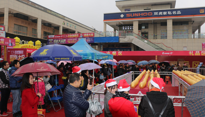 活动当天,表演嘉宾、著名巴蜀笑星铁公鸡现场助兴,铁公鸡的到来把本次活动推向了高潮。为了让消费者有一个轻松、愉快的购物体验,组织方还特别设置了产品展示区、签到处、冷餐区、砸金蛋区以及嘉宾区。为了摆脱单一的砸金蛋方式,圣象地板特别设置了砸金蛋活动,每一个金蛋里都有奖品,等着上场砸金蛋的消费者排起了长龙。