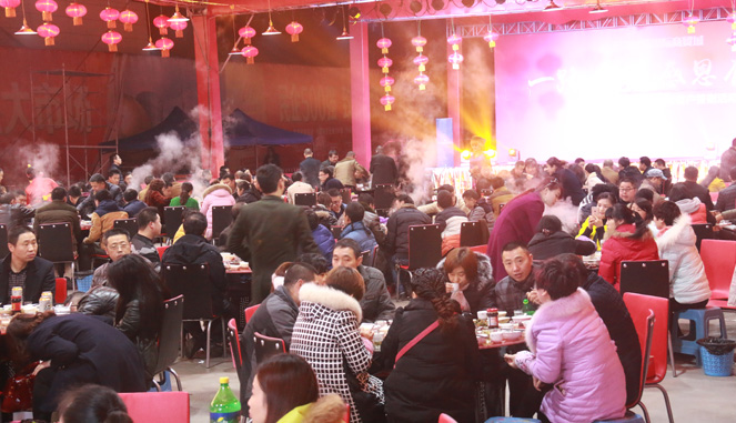 在品尝羊肉汤锅的同时,还请来了专业的表演团队,台下热气蒸腾,台上载歌载舞,好不热闹。来自雪域高原的女歌手的天籁之音,赢得无数喝彩掌声,在敬酒环节,每一桌都响起藏族的祝酒歌。丰盛的羊肉汤锅、别具异域风情的藏族歌舞、热情周到的服务……,现场还有献花环节,为在场的每一位女士送上鲜花,尖叫声不时响起!