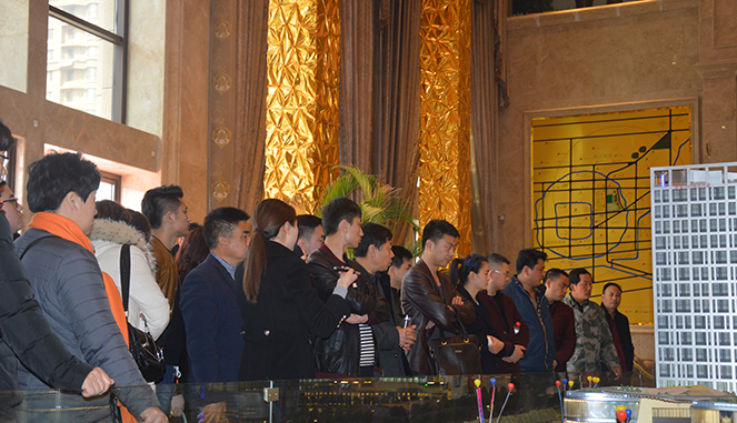 在菏泽亿联招商副总纪红女士与招商部负责人的陪同下,尹作龙会长率领的滕州商户首先聆听了项目沙盘的讲解,了解了项目的规划、布局、地段、具体功能组团等基本情况,众多商户纷纷对亿联世贸中心一流软硬件和先进管理运营表示赞叹和认同。