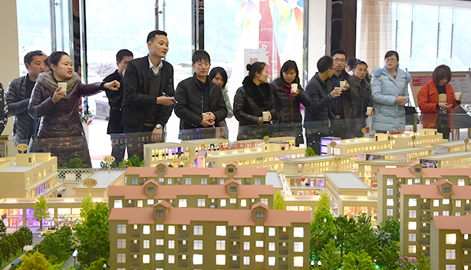明通镇村镇干部一行到达城口亿联商贸城后,亿联项目副总经理卓建辉在招商销售大厅项目沙盘前,向客人介绍城口亿联项目的规模、位置、建筑形态及项目主要组成。