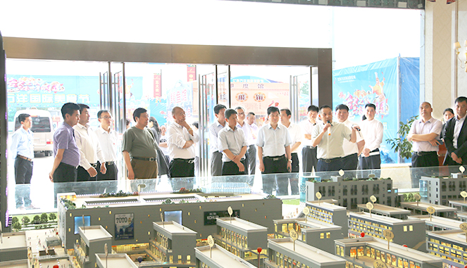 在项目招商销售中心,蔡祈远分别向各位领导介绍了宝丰亿联的基本概况、项目进展、工程进度、招商成果,及下阶段节点安排。考察团一行对宝丰亿联项目的整体规划、招商力度和成绩给予了充分的认可和高度肯定。