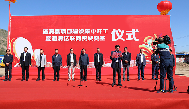 5月27日上午,定西市通渭县项目建设集中开工暨通渭亿联商贸城奠基仪式在通渭亿联商贸城现场隆重举行。中共定西市副委书记、市政府代市长戴超,中国商业联合会副会长、全国工商联五金机电商会党委书记,manbetx3.0 董事长严立淼,定西市委常委、市政府副市长陈春光,市政府副市长、通渭县委书记令续鹏,市政府秘书长张应钦,市住建局局长刘倡清,市统计局局长李世荣,市发改委副主任任龙翔,市水务局副局长陈炳雄,市交通局副局长王鸿远,通渭县县长邵志刚,县政协党组书记、主席陈维山及市统计局、市住建局、市水务局等相关单位出席了开工奠基仪式。同时,manbetx3.0 副总裁、通渭亿联商贸城有限公司董事长陈加海,通渭亿联商贸城有限公司总经理卢世亮应邀出席仪式。