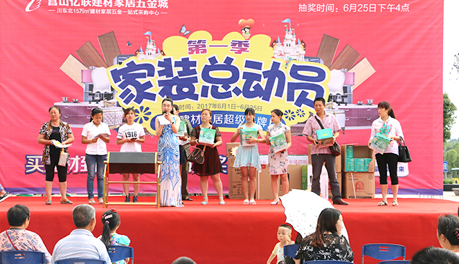 本届家装总动员活动共推出60余商家和建材、家居、家电、装饰等上千种商品,活动期间,在营山亿联下定单的顾客,就可以参加定单礼、联单礼、大富翁、抽大奖等多项活动。本次活动共设置了6个奖项共65个大奖、1100多个奖品,奖项设置吸引了一大波眼球,40寸液晶电视、空气净化器、迷你冰箱、电磁炉、咖啡机等众多好礼一一现身。