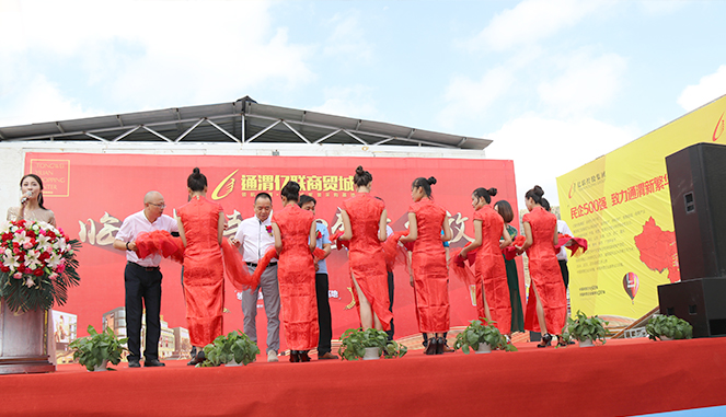 与会领导共同为通渭亿联商贸城临时接待中心开放剪彩。(通渭)