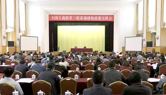 12日,严立淼董事长参加了全国工商联第三联系调研组贯彻宣讲大会和甘肃省项目招商推荐会,全国工商联党组副书记、副主席樊友山,甘肃省委常委、省委统战部部长马廷礼,省政府副省长张世珍,省委统战部常务副部长张文学等领导班子成员,全国工商联联系调研组全体成员,各市州工商联主席、党组书记,省工商联在兰执委、机关全体干部、直属商会负责人等近三百人参会。