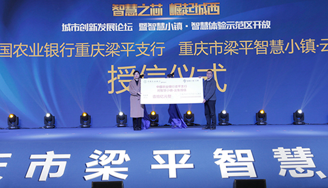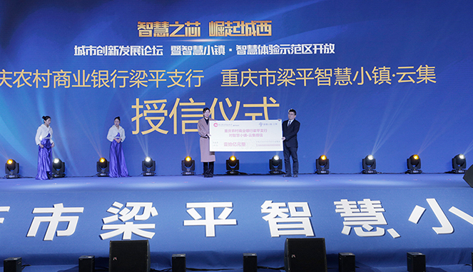 授信仪式上,中国农业银行重庆梁平支行副行长石原应、中国工商银行重庆梁平支行副行长周杰、重庆市农村商业银行梁平支行主任陈华祥分别与manbetx3.0 副总裁、重庆市梁平智慧小镇项目总经理胡维维进行了重庆市梁平智慧小镇·云集项目10亿元人民币信用额度的授信仪式。