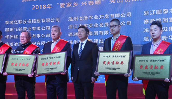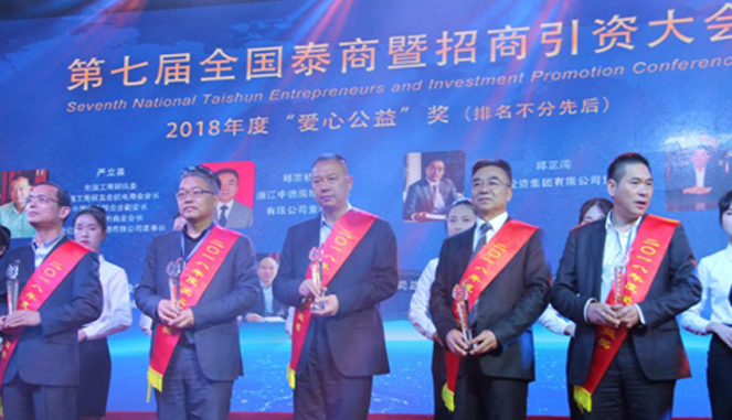 董事长严立淼被授予2018年度爱心公益奖;泰顺亿联投资控股有限公司荣获2018年“爱家乡 兴泰顺”突出贡献奖。