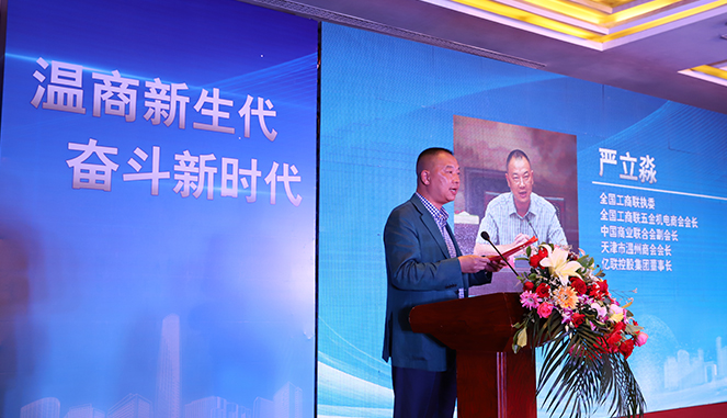 会上,严立淼发表了热情洋溢的讲话。他说,企业家是社会的宝贵财富,新生代企业家是国家实现“两个一百年”奋斗目标的重要推动力量。服务、支持、配合新生代企业家创业创新创造,是天津市温州商会的职责所在、使命所在。他向大会发出五点倡议:要深度明确精髓、要深度明确回报、要深度明确精神、要深度明确转型、要深度明确共享,并高瞻远瞩地提出了学习习近平思想特别是经济思想的五个方面、回报家乡选择的五种方式、温商精神的五个方面的体现、转型升级的五个突出定位、人工智能云架构和人工智能产业生态体系五大产业和向温商开放的五个平台的观点。同时,严立淼会长对新生代温商开拓未来表达了殷切期望:新生代企业家一定要做好“日常功课”,提升“基本素质”,增强“看家本领”;不忘初心,心无旁鹜,专注于主业实业,在科技创新、模式创新、品牌建设、制度建设上狠下功夫;时刻保持清醒的头脑、滚烫的热情,不以物喜、不以己悲,在危机中觅机,在天晴时补漏,不断穿越经济周期,不断推动企业发展迈上新台阶。