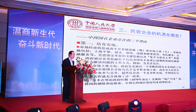 中国人民大学经济学院教授、中国人民大学国家发展与战略研究院常务副院长聂辉华,在会上做了题为《竞争中性原则与民营企业发展的机会》的主旨演讲,通过详实的调查数据和深刻的经济理论,紧密结合国际国内经济发展形势,深入浅出地分析了民营企业面临的发展规律和历史机遇。