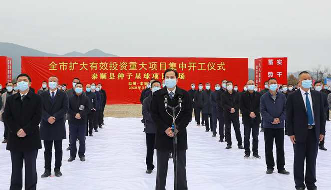 严立淼董事长首先对家乡各级领导长期给予的特别关怀和无私帮助表示敬意和感谢。他说,在“防疫”战争取得重大进展之际,县委、县政府在华东大峡谷氡泉旅游度假区种子星球项目举行泰顺县百亿项目集中开竣工活动,充分体现了家乡各级领导不怕疲劳、连续作战的坚强意志,充分体现了家乡各级领导“一手抓防疫,一手抓发展”的担当精神,充分体现了家乡各级领导谋项目促跨越的胆略气魄,充分体现了家乡各级领导对泰商回归项目的重视支持。