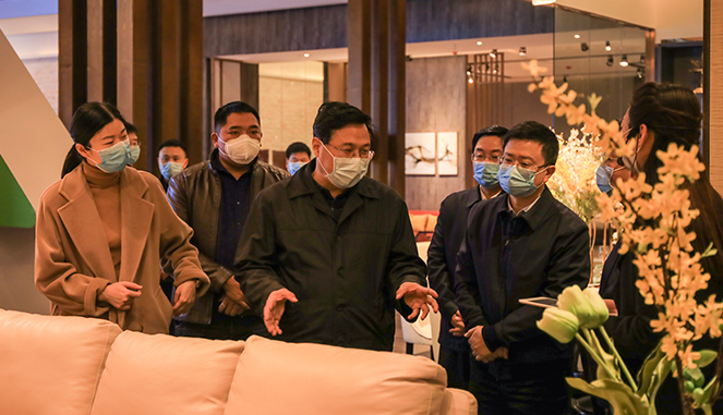 吴存荣先后来到智能家居生产车间和智能家居体验馆,分别了解疫情防控和复工复产情况、查看智能家居生产情况和销售情况,以及查看家居产品种类和款式、了解家居智能化设备在生活中的应用。