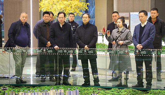 王昌荣一行来到蛟龙出海·游客中心,在项目沙盘前详细了解项目规划及推进情况,并观看了项目宣传片,对项目的整体规划给予高度赞扬,对项目的建设进度给予充分肯定。