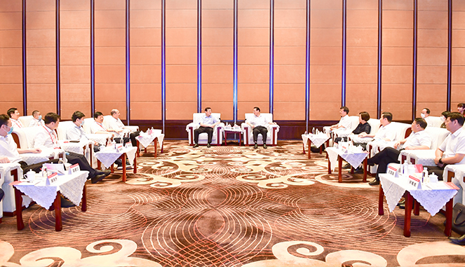 14日下午,中央统战部副部长、全国工商联党组书记徐乐江,江西省委副书记、省长易炼红在赣州与出席本次活动的嘉宾和知名企业家代表座谈。