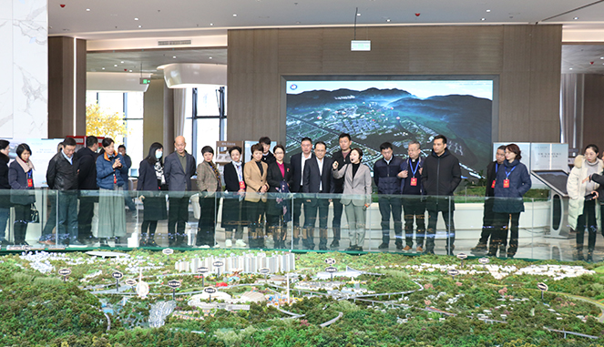 陈作荣一行看沙盘、听讲解、观视频,详细了解项目的总体规划和各子项目的规划设计及推进进展,对大峡谷项目宏大的规模、前瞻性的规划设计及亿联反哺家乡的情怀频频点赞。